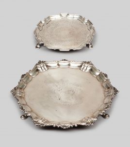 zwei Café-au-Lait-Gedecke, Kaffeegedeck und ein Menueteller