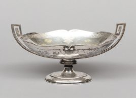 Amphorenvase mit Deckel; Kratervase mit Griffen, auf Standfuß, und Korbschale, oval, H = 25 cm und 37 cm bzw. L = 33 cm