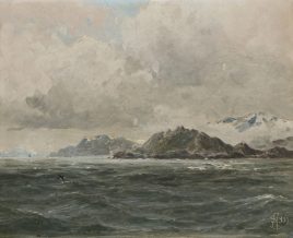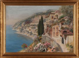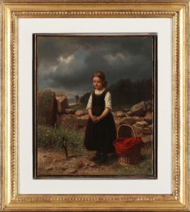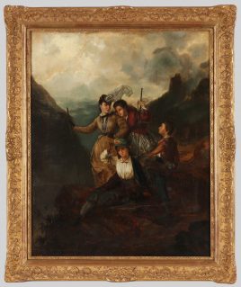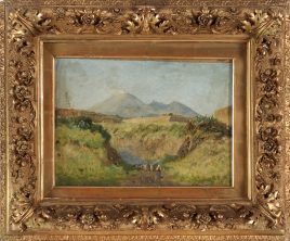 ‚Am Aussichtspunkt‘, Öl/Lwd., 77 x 61 cm, doubliert, restauriert, Druckstellen