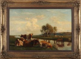 ‚Viehhirte in Vorgebirgsidylle‘, Öl/Lwd., 60 x 70 cm restauriert, doubliert