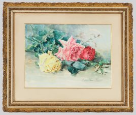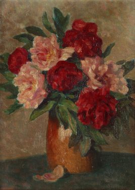 ‚Blumenstillleben‘, Öl/Lwd., 81 x 60 cm, Wachsdoublierung, restauriert, Kratzspur