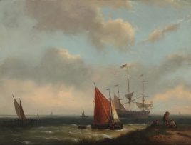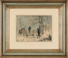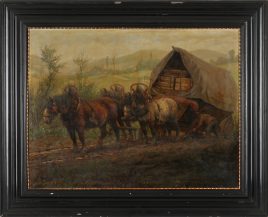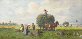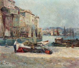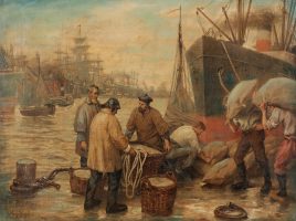 ‚Schauerarbeiter‘, Öl/Lwd., 72 x 97 cm, doubliert, restauriert, beschädigt