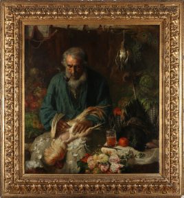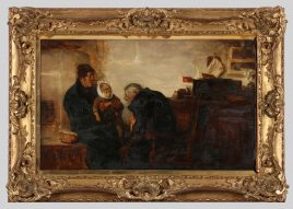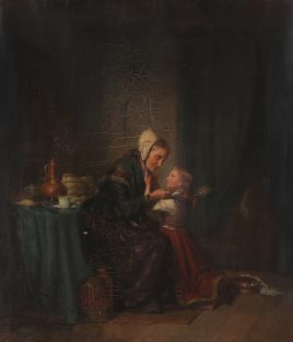 ‚Der neue Erdenbürger‘, Öl/Lwd., 69 x 55 cm, doubliert, restauriert, – verso auf Etikett bez. August Siegert –