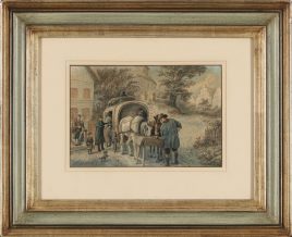 18.Jh., ‚Rebekka und Elieser am Brunnen‘, Öl/Lwd., 53,5 x 43,5 cm, doubliert, restauriert