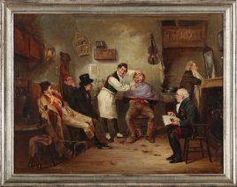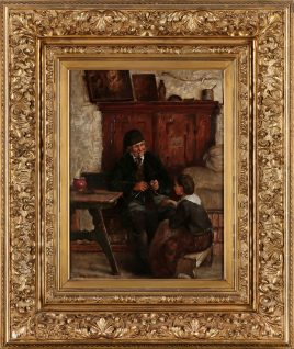 Hagnau 1815 – 1893 München, ‚Das Empfehlungsschreiben‘, Öl/Holz, 24,5 x 36 cm, restauriert