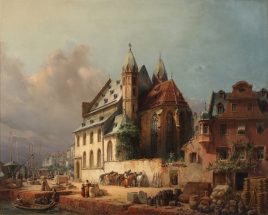 ‚Stadt am Fluss‘, Öl/Lwd., 70 x 93,5 cm, doubliert, restauriert