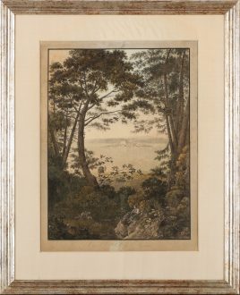 l.u.sig., ortsbez. und dat. Roma 1840, Berlin 1815 – 1900 Groß-Lichterfelde, ‚Bacchant, schlafend im Wald‘, Öl/Lwd., aufgezogen, 54,5 x 64 cm, beschnitten, Farbfehlstellen, o.R.