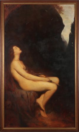 ‚Akt einer Märtyrerin‘, Öl/Lwd., 213 x 122 cm, Kratzspuren
