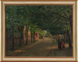 verso sig., ortsbez. Frankfurt, Wernigerode 1867 – 1928 Frankfurt/M., ‚Sonnendurchflutete Allee‘, Öl/Lwd., 50 x 65 cm, Farbfehlstellen