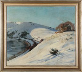 Weimar 1860 – 1941 Düsseldorf, ‚Weinfelder Maar im Winter‘, Öl/Lwd., 80 x 94 cm, restauriert