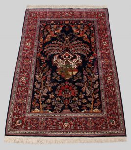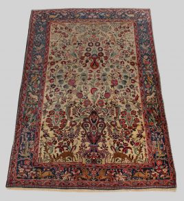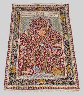 Tiermotiven und floralem Dekor, 180 x 118 cm, Randbeschädigungen, verkürzt