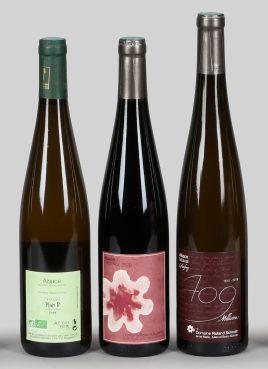 Pinot Gris, Plan B, 2019, A.C., sechs Flaschen; Pinot Noir, 2020, A.C., sechs Flaschen; Muscat, Glintzberg, 2019, A.C., sechs Flaschen, je T.n.g. (18)