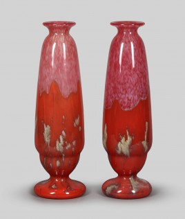 Klarglas, mit roten und beigefarbenen Einschmelzungen, H = 48 cm