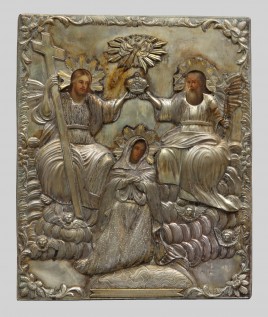 mit Metallfäden, 86 x 62 cm, restauriert, Lichtschaden