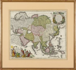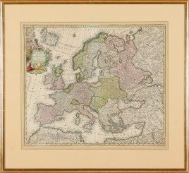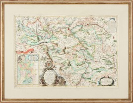 ‚Carte Geographique du Duché et Pomeranie et Mecklenbourg‘, Kupferstichkarte, 1676, handcoloriert, 48,5 x 49 cm, und ‚Electoratus Brandenburgi, Mekelenburgi, et maxima partis Pomeraniae novissima tabula‘, Kupferstichkarte, um 1680, handcoloriert, 48,5 x 49 cm, Knickfalte, gefleckt, gebräunt (2)