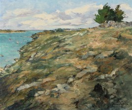 Berlin 1863 – 1914 Hermannswerder, ‚Sommerwiese‘, verso ortsbez. Stargard in Mecklenburg, Öl/Ktn., 49 x 58 cm, und ‚Profilportrait in braunem Mantel‘, Gouache mit Deckweiß, 30 x 22,5 cm, Farbfehlstellen, Kratzspuren