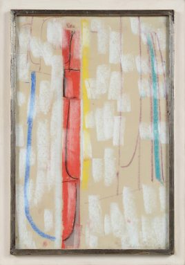 Düsseldorf 1929 – 1970 Ratingen, ‚o.T.‘, Buntstiftzeichnung mit Wachskreide, Deckweiß und Tuschpinsel, 36 x 48 cm – verso handschriftlicher Vermerk 1972 –