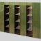 Vogelaugenahorn, grün gebeizt, innen elektrisch verschiebbares Regal, wechselweise amethystfarbene- oder grüne Innenfelder, mit Beleuchtung, 21 Glasböden, mit zwei Fernbedienungen, 219 x 278 x 46 cm (1 x Foto 6/6, 1 Foto Internet)