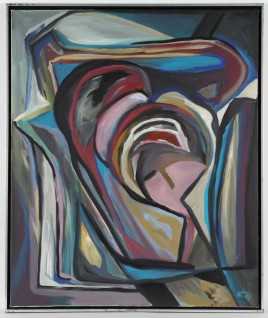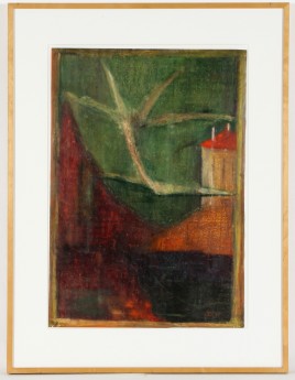 Saloniki 1960 – tätig daselbst, ‚o.T.‘, undeutlich betitelt, Mischtechnik/Hartfaser, 84,5 x 70,5 cm, Farbfehlstellen, Kratzspuren