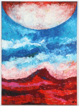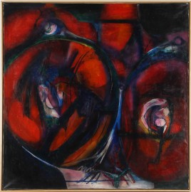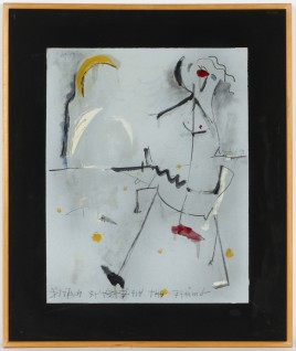 Saloniki 1960 – tätig daselbst, ‚Liebe des Mondes‘, verso auf Etikett betitelt, Mischtechnik/Hartfaser, 84,5 x 70,5 cm, Farbfehlstellen, Kratzspuren