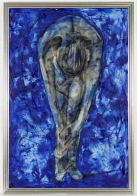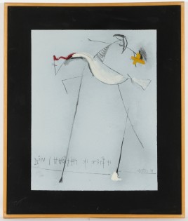 dat. (19)92, geb. Hermannsburg 1945, ‚Mit geflicktem Flügel‘, Aquarell und Kohle auf geprägtem Bütten, 88 x 59 cm (PP-A.)