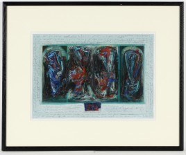 l.u. undeutlich sig., dat. 2/10/1993, ‚Vesper‘, betitelt, Mischtechnik und Collage/Papier, 75 x 54 cm (PP-A.)
