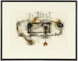 Eberswalde 1927 – 2010 St.-Pierre-de-Vassols, ‚o.T.‘, Radierung mit Farblithographie, 11/100, 50 x 37 cm, Lichtschaden