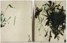 r.m.sig., 1980er Jahre, ‚o.T.‘, Diptychon, Öl/Leinen, 99 x 140 cm, Wasserschaden, o.R.