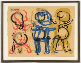 ‚Vallauris – Hommage à Picasso‘, betitelt, Farbholzschnitt, 2/10A, 50 x 70 cm, knittrig, fleckig