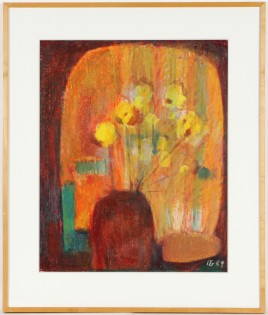 r.u.mon. OG, dat. (19)69, ‚Blumenstillleben‘, Wachskreide/Papier, 69 x 56 cm (PP-A.), eingerissen