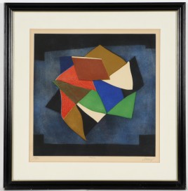 Pécs 1906 – 1997 Paris, ‚Geometrische Formen‘, Farbserigraphie, 111/150, 66,5 x 33,5 cm, gebräunt, Stauchungen, o.R.