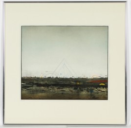 ‚Landschaft mit geometrischen Formen‘, Farbaquatintaradierung, 81/120, 42 x 49 cm