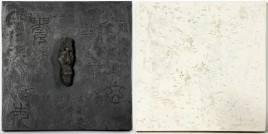 ‚Kopf‘ und ‚o.T‘, schwarzer bzw. weißer Stuck, je 40,5 x 40 cm