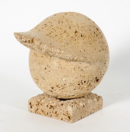 ‚Kopf mit Cap‘, zweiteilig, Travertinskulptur, 23 x 20 x 23 cm