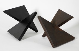‚o.T.‘, zwei Eisenskulpturen, eine lackiert, 20 x 27 x 23 cm, Farbfehlstellen