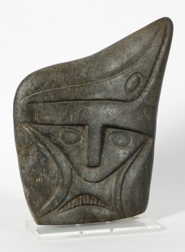 ‚Maske‘, Stein, H = 47 cm, Kratzspuren, auf Sockel montiert