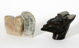 Tengenenge 1969 – tätig daselbst, ‚Hase‘, ‚Elefant‘ und ‚Gecko‘, drei Steinskulpturen, L = 19 cm bis 24 cm, Kratzspuren