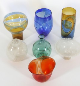 mon. Paula Bartron, D. Hinz, Eisch, Coleman und Theodor G. Sellner, Vasen und Schalen, H = 17,5 cm bis 24,5 cm bzw. D = 3 cm bis 28 cm (20)