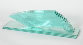 dat. (19)89, ‚Kopf und Gefühl‘, betitelt, Glasskulptur mit Bronzemontierung, H = 30 cm