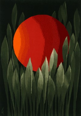 Kalkutta 1944 – tätig u.a. in Paris, ‚La terre sombre‘, l.u. betitelt, farbige Aquatintaradierung, 24/50, 27 x 22 cm