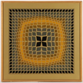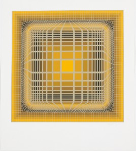 Pécs 1906 – 1997 Paris, ‚Geometrische Formen‘, Farbserigraphie mit Goldfarbe, 105/120, 60 x 60 cm, Stauchungen, o.R.