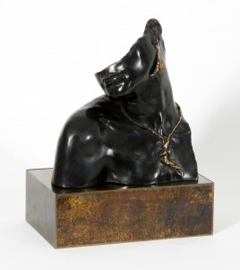geb. Madrid 1943, ‚Büstenfragment mit Ohr- und Halsschmuck‘, Bronze, 5/25, H = 29 cm, dazu Sockel
