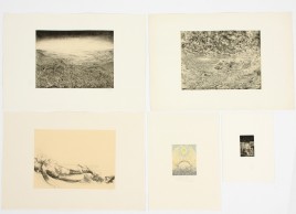 Audierne 1943 – 1990 Trevignano, ‚Nocturne‘, ‚Rondel pour Apis‘, ‚Femme allongée‘, ‚Le ciel et la mer‘ und ‚Plantes‘, betitelt, fünf (Farb)Radierungen, mit Auflage, 11 x 7 cm bis 30 x 39 cm, Randbeschädigungen, teils fleckig, o.R. (5)