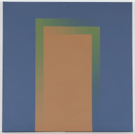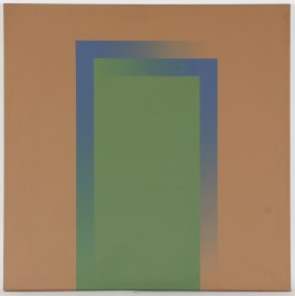 Ausstellungsetikett Düsseldorf 1972, Berlin 1934 – 1998 Béziers, ‚8.72 Medial‘, Kasein/Papier/Lwd., 78 x 78 cm