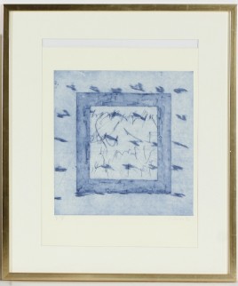 Tours 1925 – 2008 Mougins, ‚Resonance‘, Farbradierung und Collage mit Prägedruck auf teils blauem Fond, 13/40, 62 x 47,5 cm