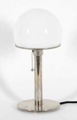 (1900-1990) Entwurf 1924, Tischlampe, Ausführung Tecnolumen, Opalglas und Metall, vernickelt, H = 35 cm, Gebrauchsspuren
