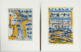 je r.u.handsig., dat. (19)94 bzw. (19)96, Groß-Gerau 1951 – tätig bei Darmstadt, ‚o.T.‘, Öl/Papier, 54 x 40 cm und 62 x 42 cm (2)