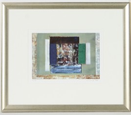 geb. Oran 1949, ‚o.T.‘, Collage, Bleiplatte, Lwd., Stuck, 25 x 14 cm