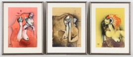 je l. bzw. m.u.handsig., Gradara 1935 – tätig in Hannover, ‚Weibliche Akte‘, drei Farblithographien, je 1.259/1.500, 40 x 31 cm bzw. 31 x 39 cm (PP-A.) (3)