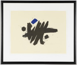 Tours 1925 – 2008 Mougins, ‚4 Lignes Bleues‘, Prägedruck und Mischtechnik auf teils braun gefärbtem Papier, 5/90, 73 x 55 cm